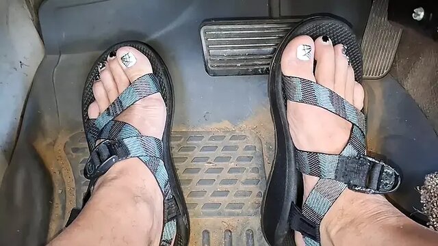 Couple shows off their sexy bodies in sandals on a nice day
