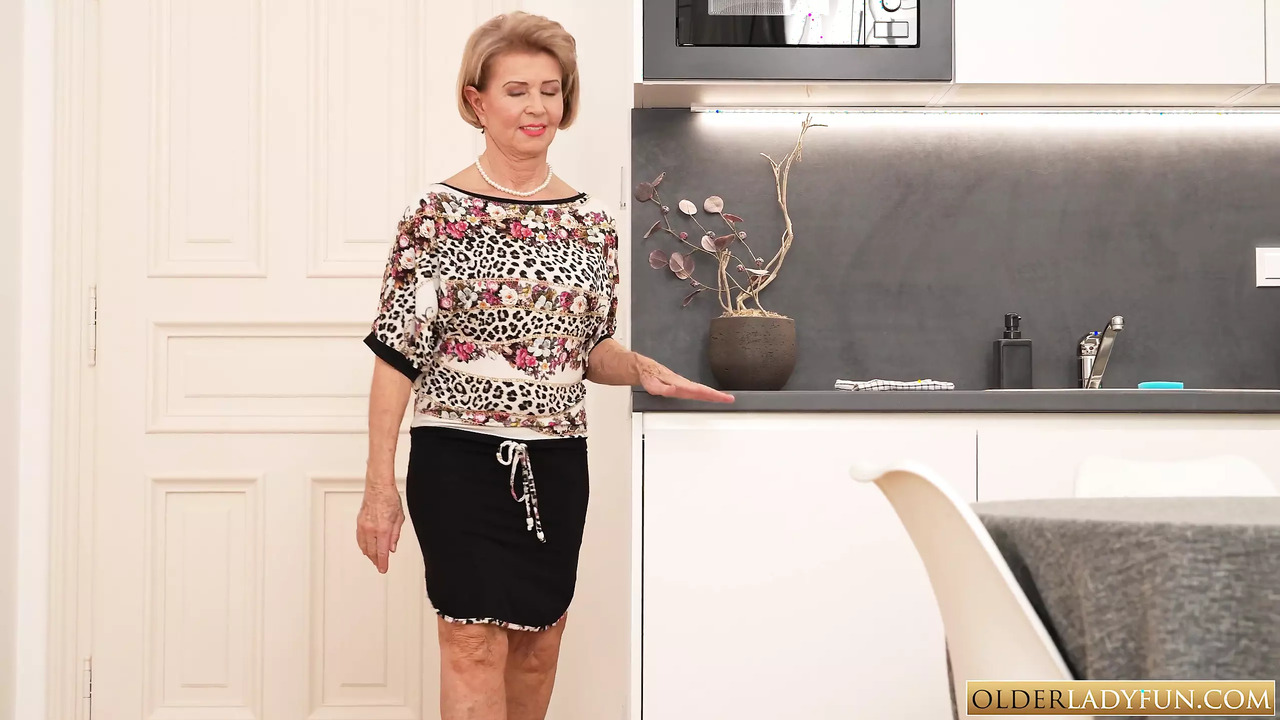 Granny blonde from Prague strokes her gilf alone in the kitchen