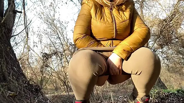 Mother-in-law sat down to pee outdoors