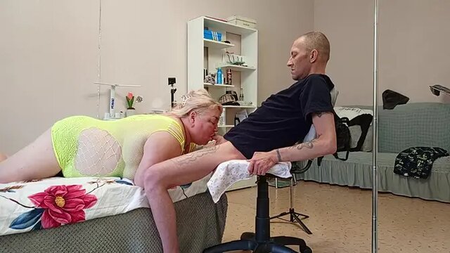 A friend leans down and gives a Blowjob of a lifetime, sucking off an impressive load from a rock-hard dick. She takes all of it into her mouth, swallowing every drop of hot cum as he cums like a champ.