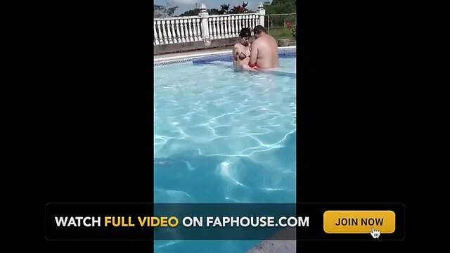 My hot wife and I spend a steamy day at the pool. She shows off her saggy boobs in a revealing bikini, teasing me all day. I get lucky and she gives me a handjob under the water.